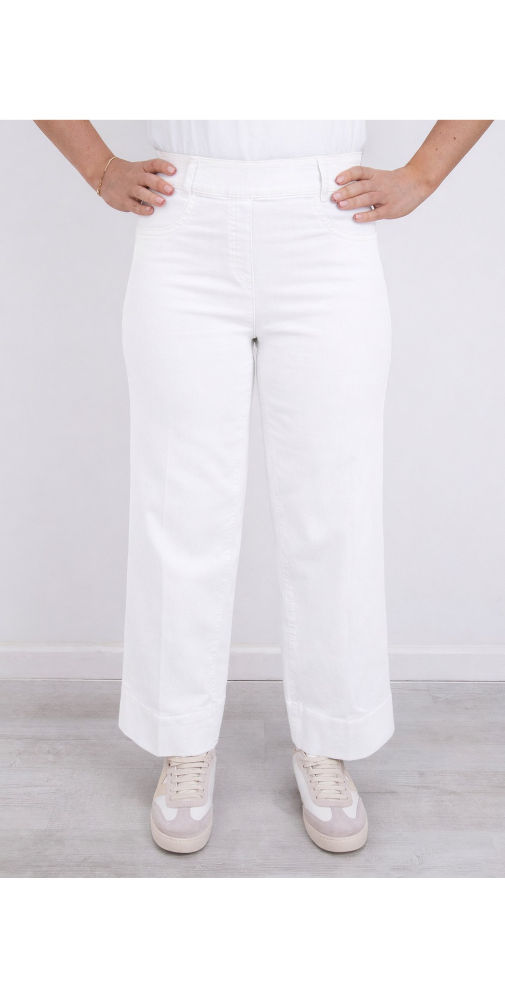 Robell Debby 09 White Crop Wide Leg Pull On Jean