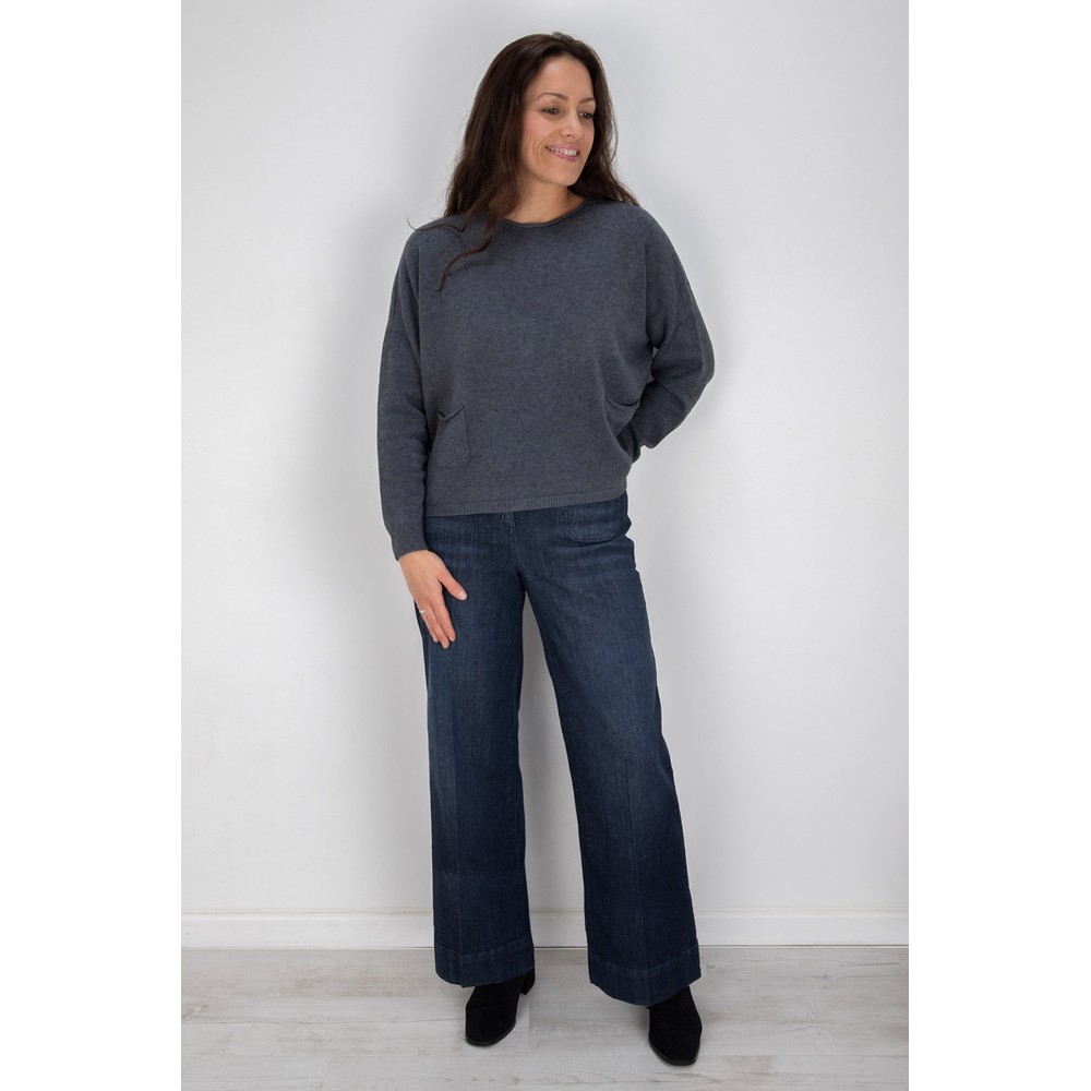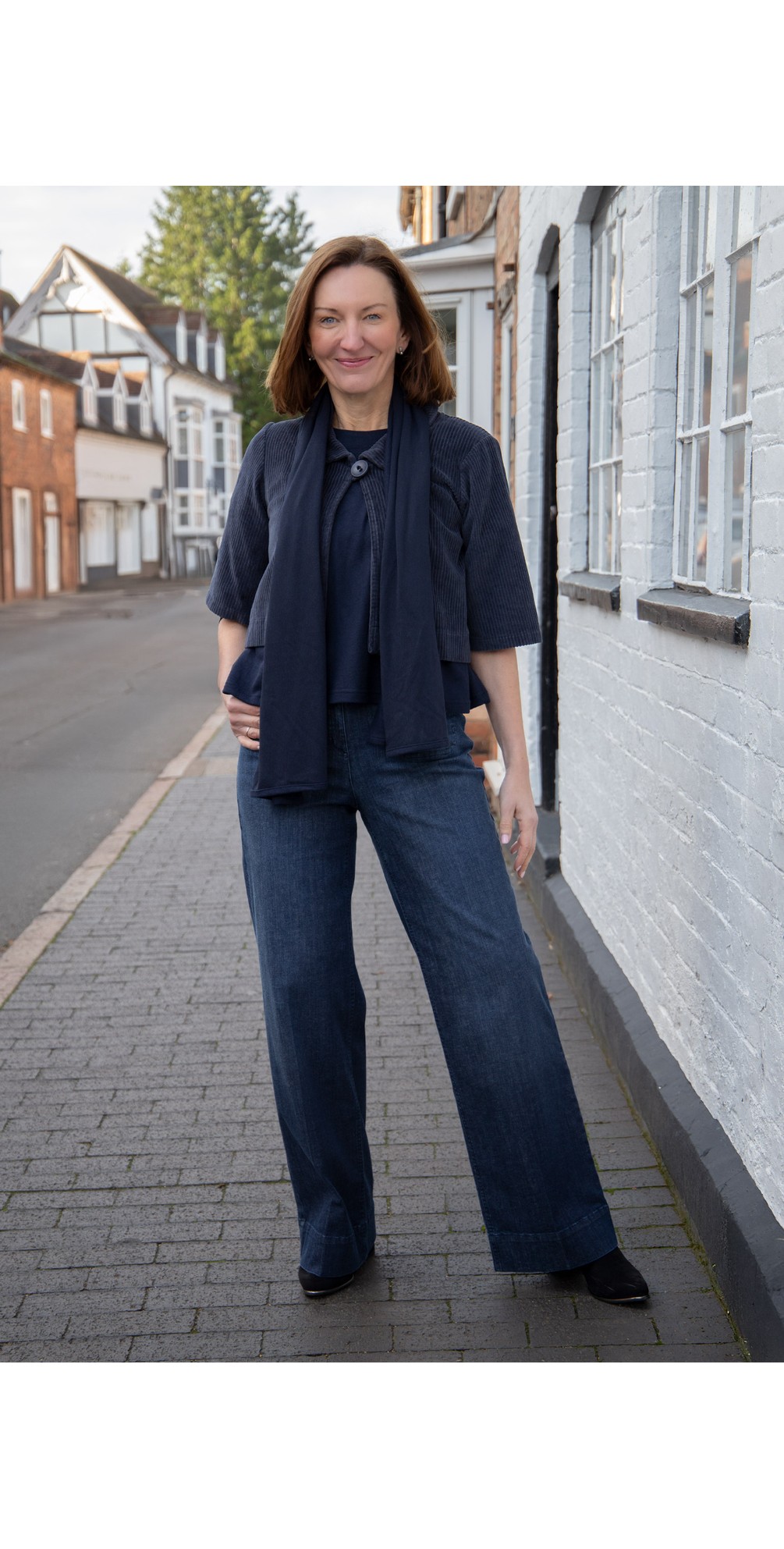 The Debby Jean showcases a timeless wide-leg silhouette with classic tailoring details: a smooth button-and-zip fly, statement front patch pockets, and a subtle deep hem for that relaxed yet polished finish. The longer leg length creates an elegant line that pairs beautifully with trainers for casual outings or ankle boots for a sharper look.