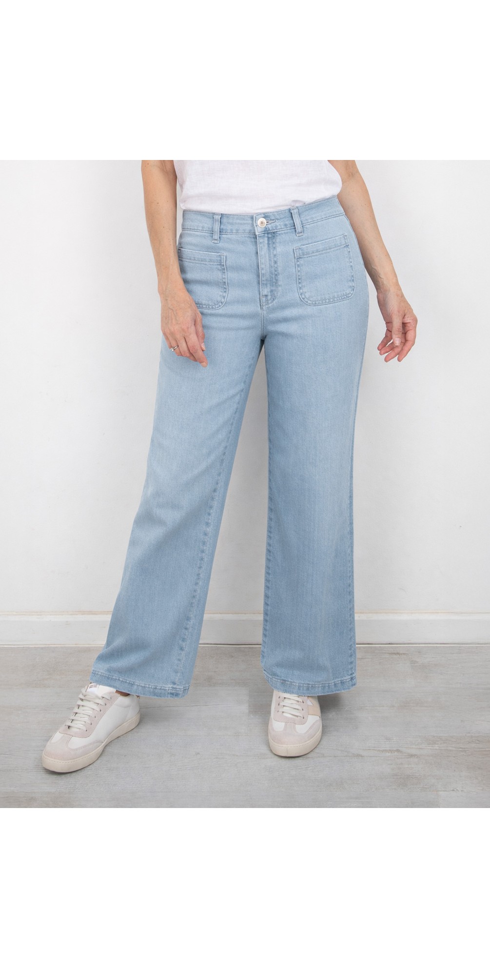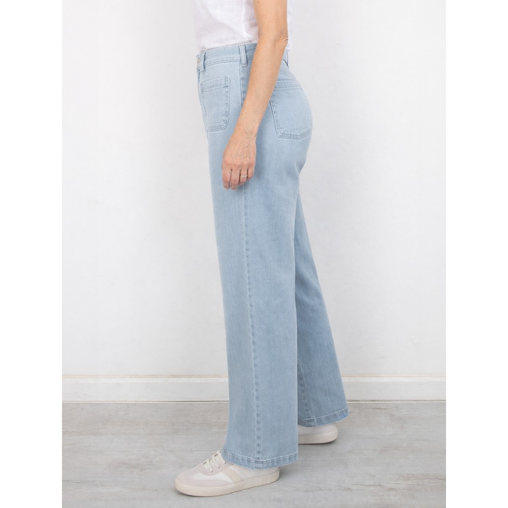 The Debby Jean showcases a timeless wide-leg silhouette with classic tailoring details: a smooth button-and-zip fly, statement front patch pockets, and a subtle deep hem for that relaxed yet polished finish. The longer leg length creates an elegant line that pairs beautifully with trainers for casual outings or ankle boots for a sharper look.