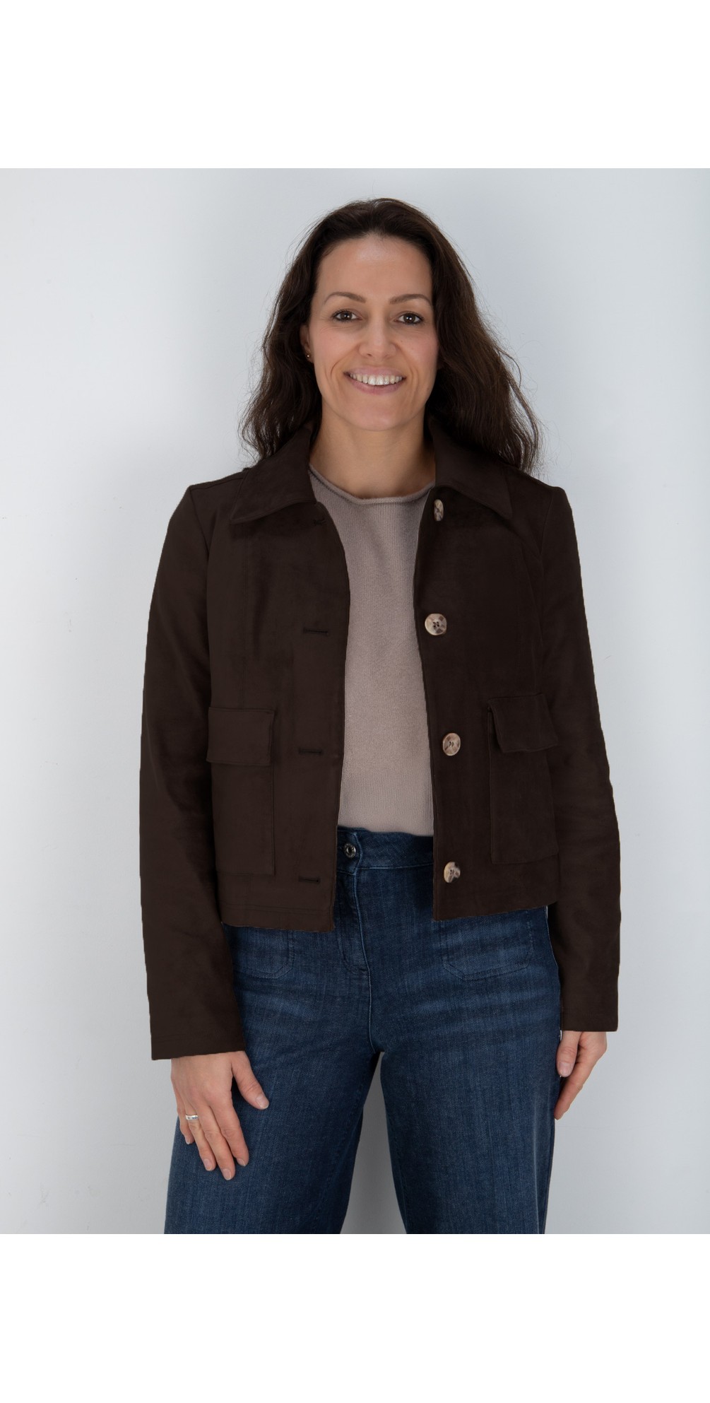 Available in three classic colours – black, tan, and dark brown – the Hilda Stretch Suede Jacket adds effortless polish to any outfit while keeping you comfortable and chic throughout the season.