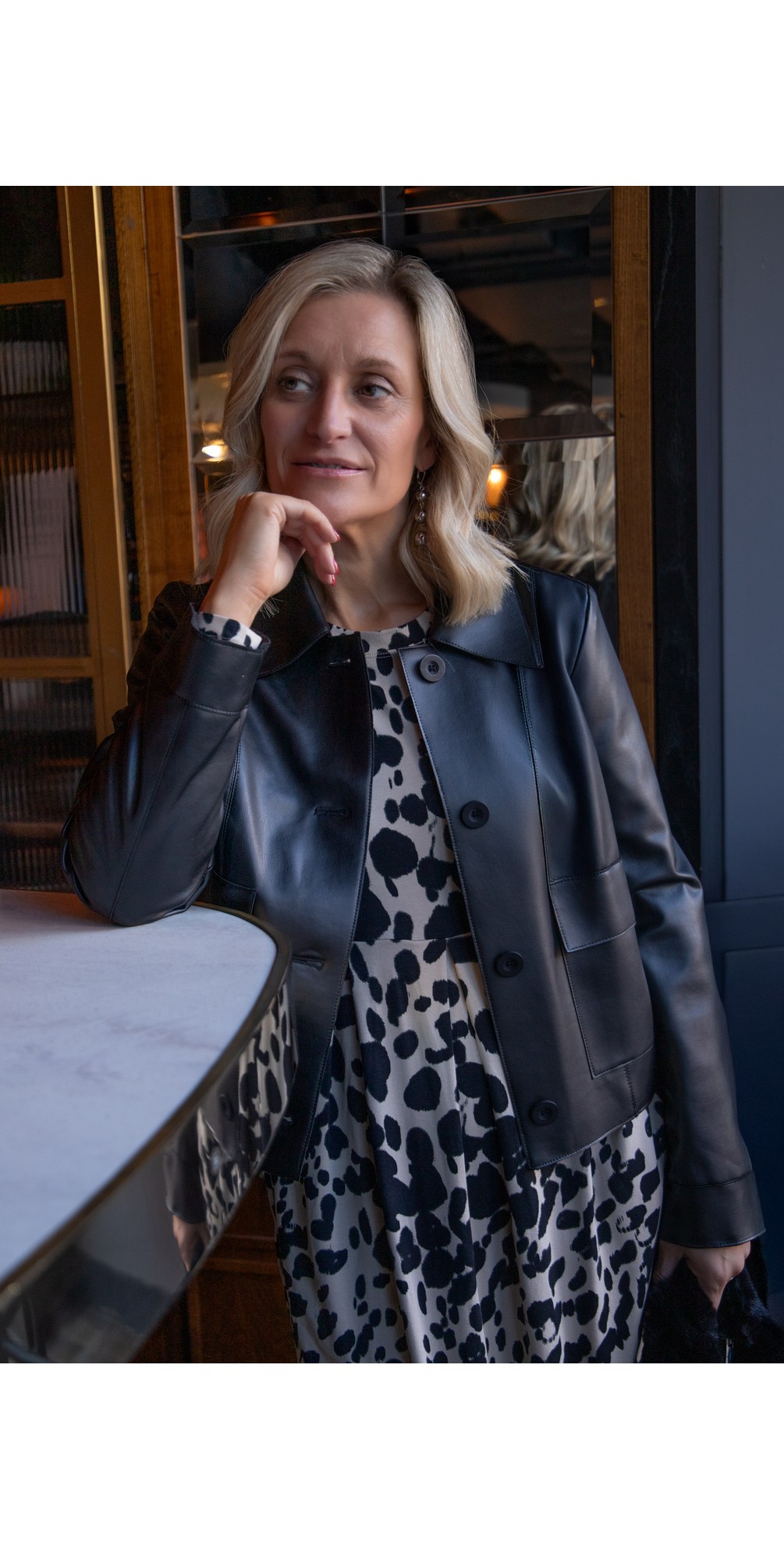 Elevate your style this season with the Hilda Faux Leather Jacket by Robell, available now at Gemini. Expertly crafted from luxuriously soft faux leather, this jacket combines modern sophistication with classic tailoring. The Robell Hilda Jacket is the perfect length to pair effortlessly with jeans, skirts, or dresses, making it a versatile addition to your autumn–winter wardrobe. Designed with a smart collar, patch front pockets, and button-through fastening, it offers both practicality and polished charm.