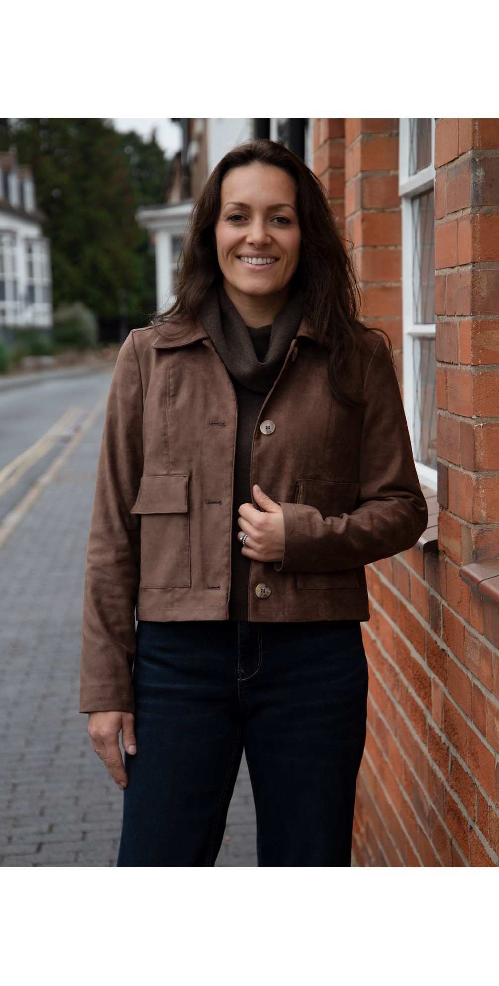 Available in three classic colours – black, tan, and dark brown – the Hilda Stretch Suede Jacket adds effortless polish to any outfit while keeping you comfortable and chic throughout the season.