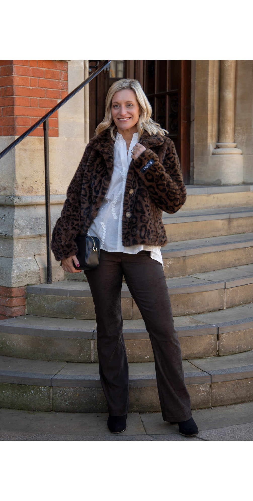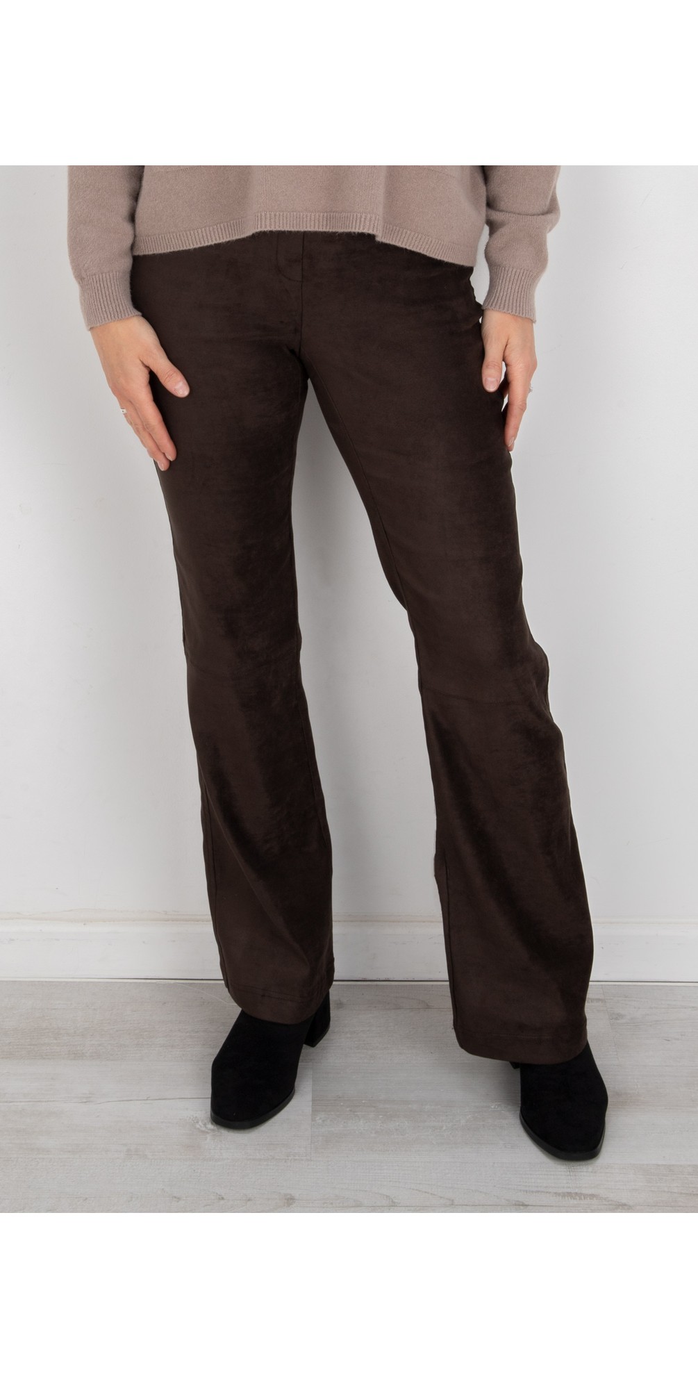 Joella Dark Brown Stretch Suede Bootleg Trouser