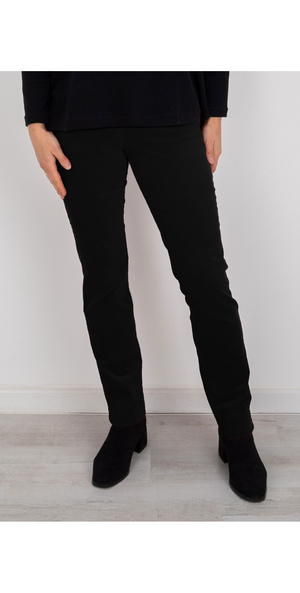 Marie Black Stretch Cotton Velvet Full Length Trouser