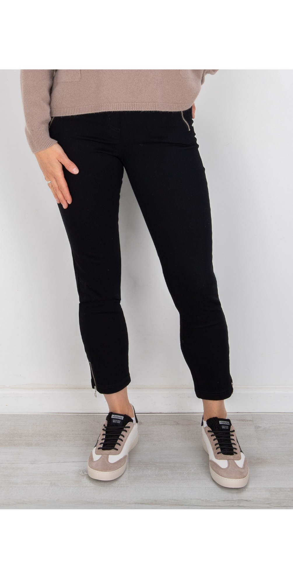 Nena 09 Black Ankle Zip Cropped Powerstretch Jean