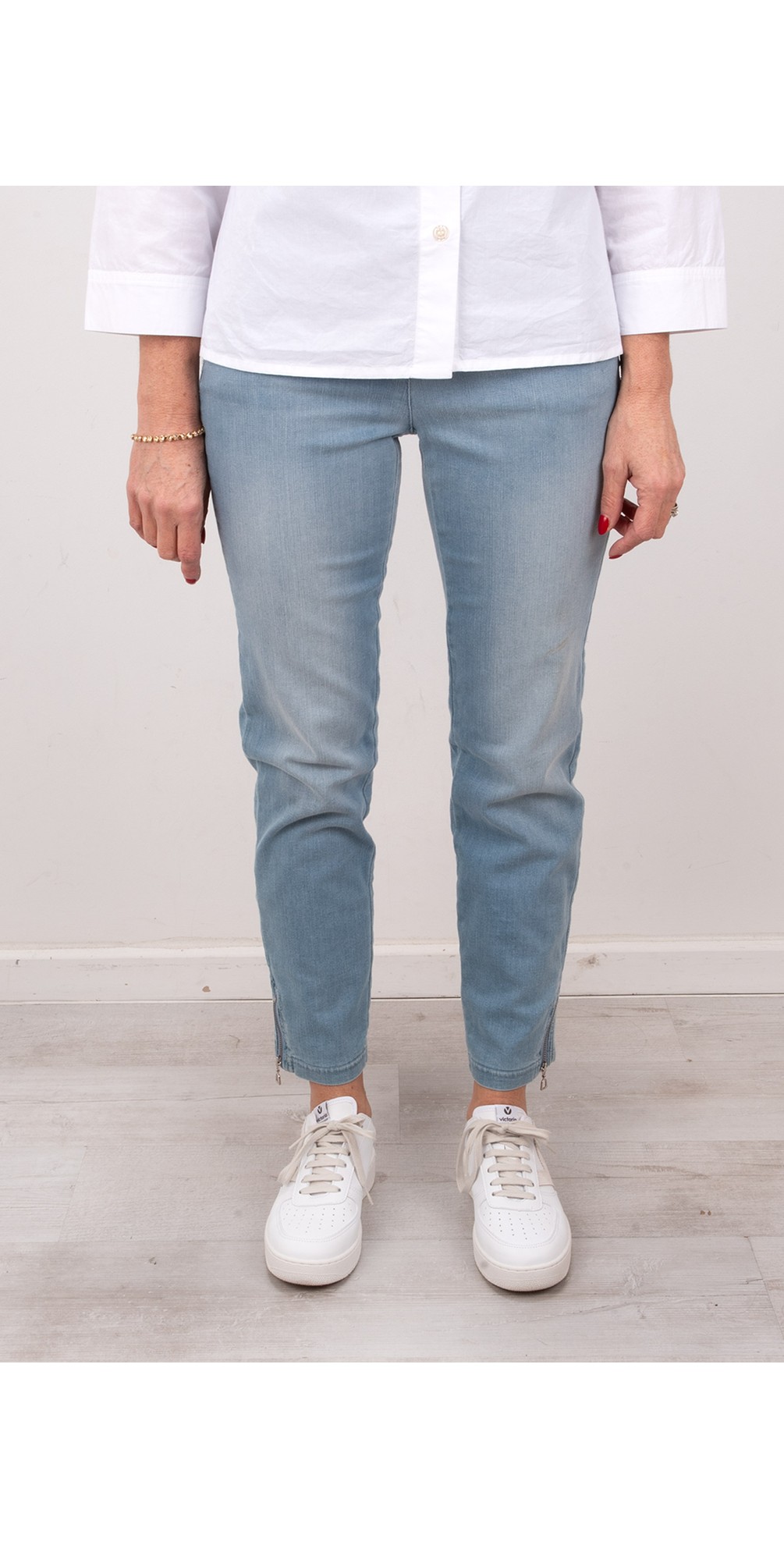 Nena 09 Washed Denim Ankle Zip Cropped Jeans