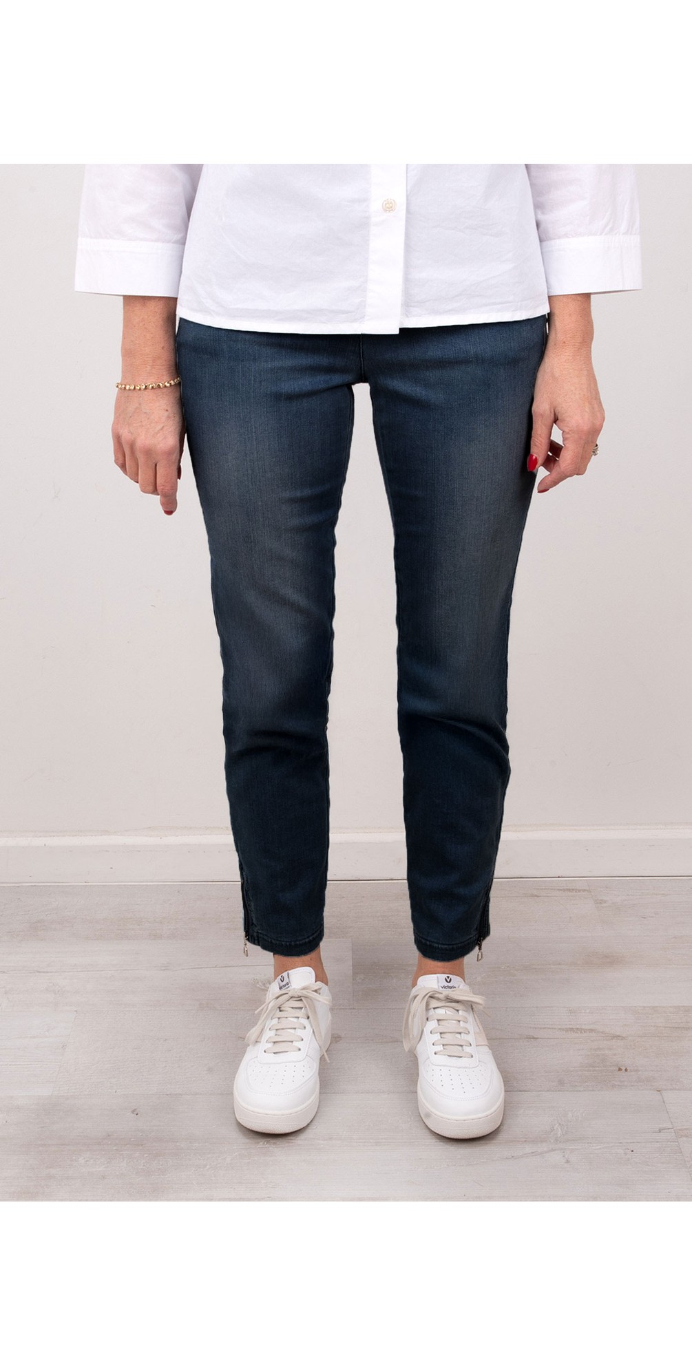 Nena Navy Washed Denim Ankle Zip Cropped Jeans