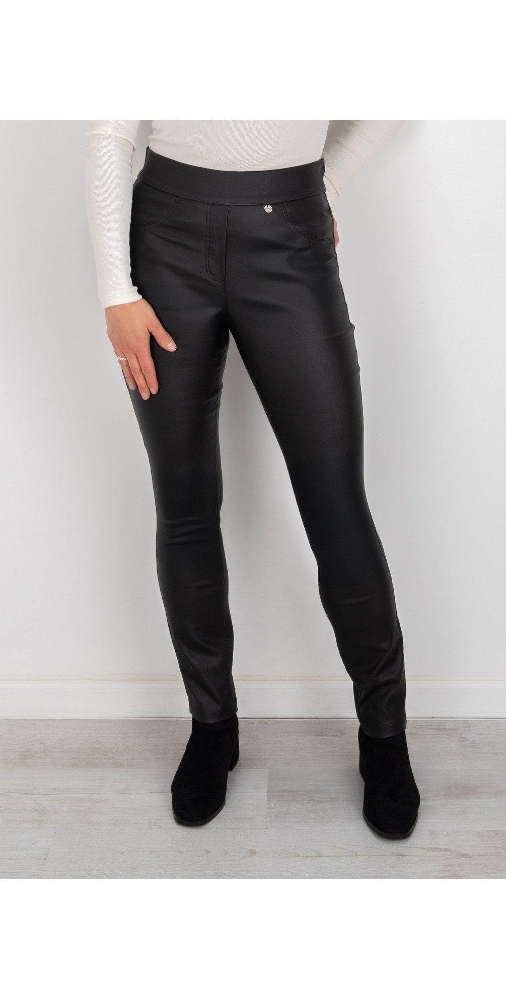 The new Robell Rose Faux Leather Trousers are the hottest trouser trend this season! An easy go-to for a luxe smart casual look you can effortlessly dress up for partywear with heels and a blouse or down with a chunky knit jumper and boots. Crafted from a soft and stretchy faux leather-look fabric, they are a simple yet stylish go to you will love!