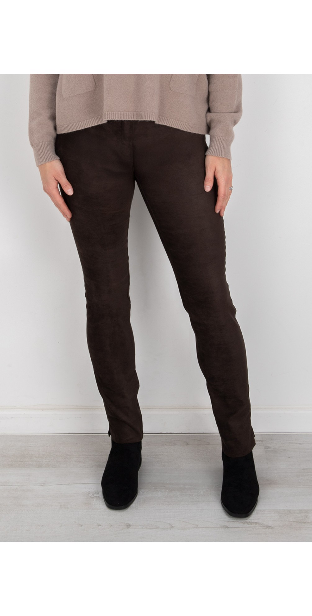 Robell Rose Dark Brown Stretch Faux Suede Trouser