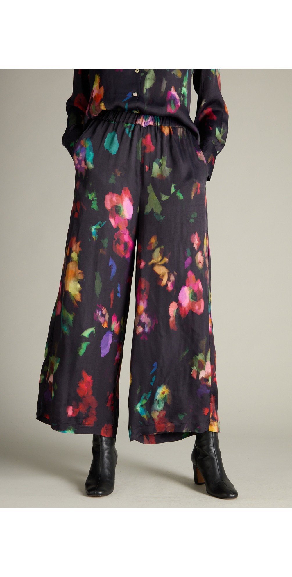 The Sahara Winter Floral Wide Trouser brings dramatic flair to your everyday wardrobe with its painterly print and fluid structure. These bold women’s trouser features a sweeping, wide-leg silhouette that lets the abstract floral motif flow beautifully with every step. The elasticated waistband ensures a comfortable, flattering fit that adapts to your shape — making it a versatile piece for both casual and dressed-up looks.