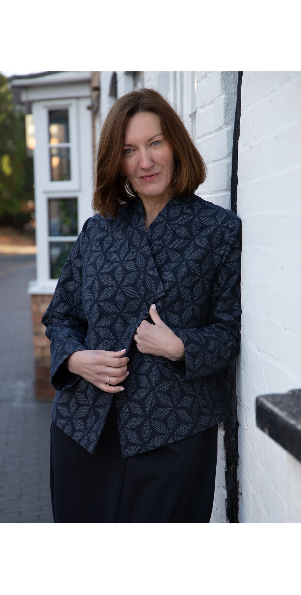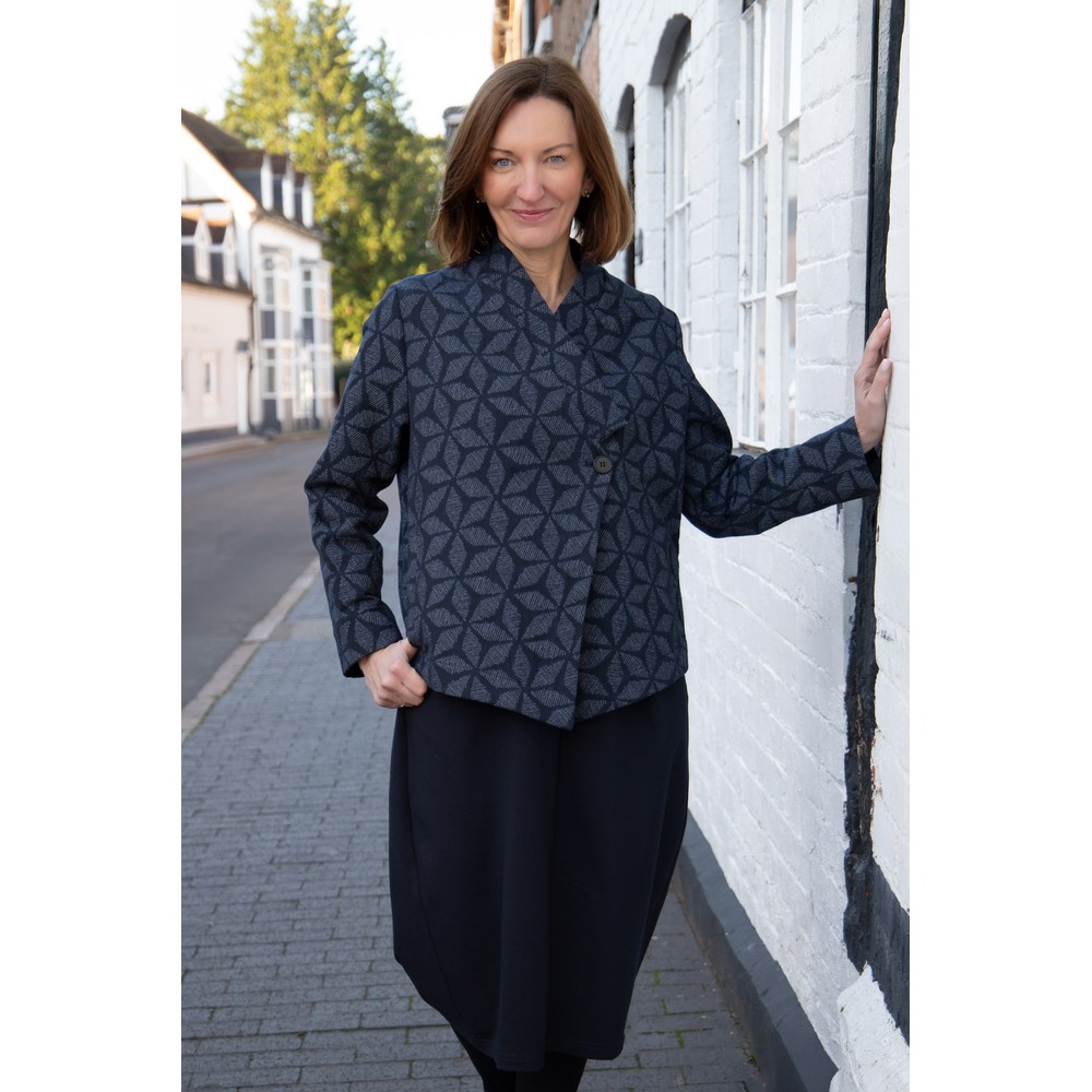 The Sahara Diamond Floral Indigo Jacket marries artistry with utility, offering a standout layer that enhances any look. Woven in a rich indigo palette, the jacquard fabric features a striking diamond floral design, bringing depth, texture, and movement to the surface. The silhouette is relaxed yet structured with a single corozo button closure and clean lines, making it easy to slip over separates as a statement blazer. Discreet pockets and a thoughtfully cut length add both function and refinement. Pair it with tailored trousers for a modern suiting look, or layer over denim to let its graphic pattern become the focal point.