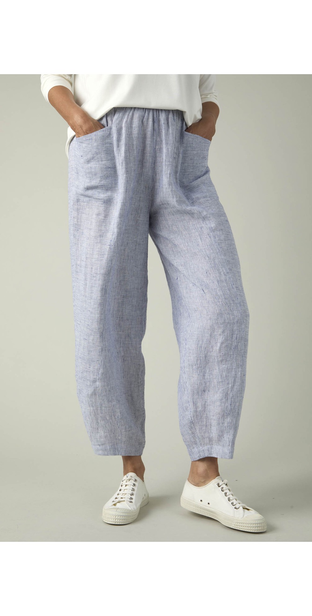 The Ticking Stripe Linen Bubble Trouser by Sahara is an effortlessly stylish women’s trouser designed for relaxed, modern dressing. Featuring a timeless ticking stripe pattern, this statement piece reflects Sahara’s signature blend of natural fabrics and easy, sculptural silhouettes.