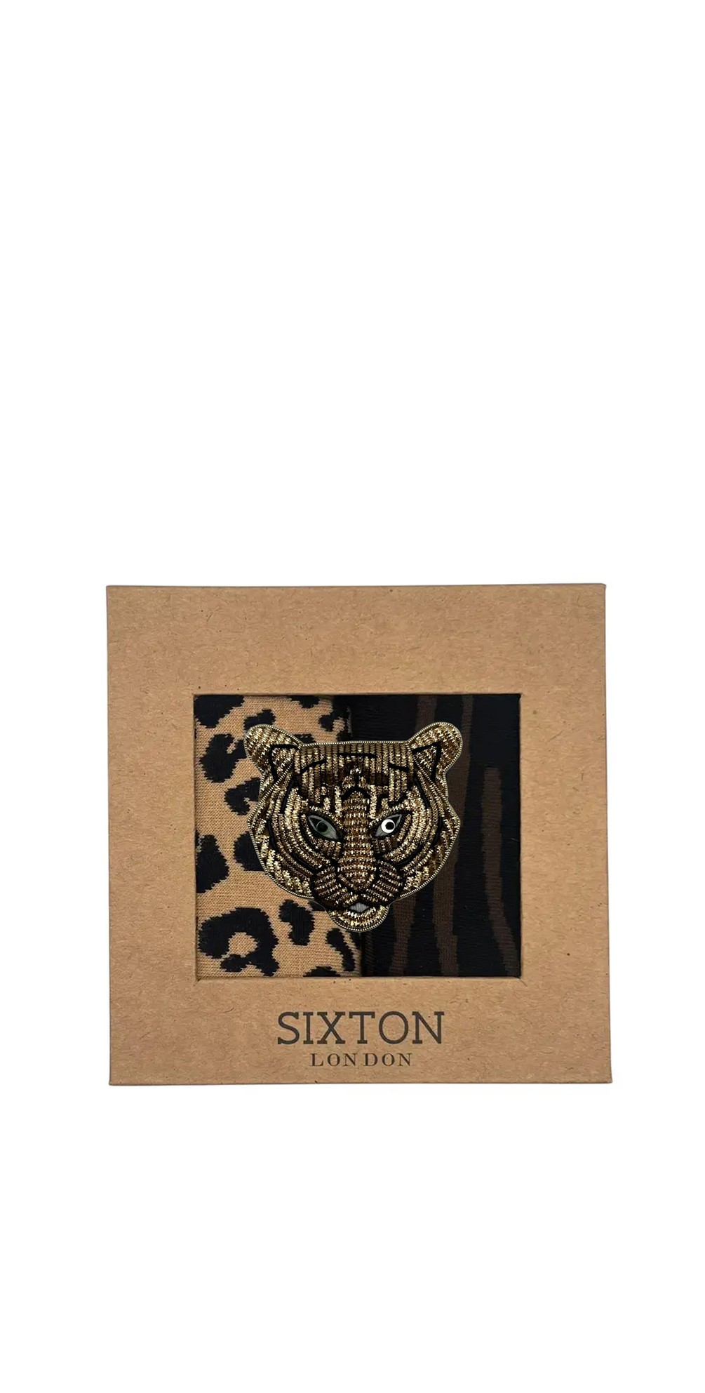 Sixton London Sand Tigerhead Embroidered Brooch Sock Box