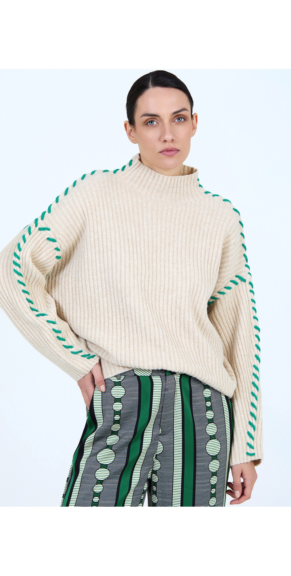 A modern twist on a classic knit. The Contrast Embroidered Sweater from Skatie features delicate embroidered details along the sleeves and neckline, paired with a cosy Perkins collar and ribbed finish. Crafted from a soft stretch wool-blend, it’s the perfect balance of comfort and style. Wear it with tailored trousers for a polished look or denim for effortless everyday chic.