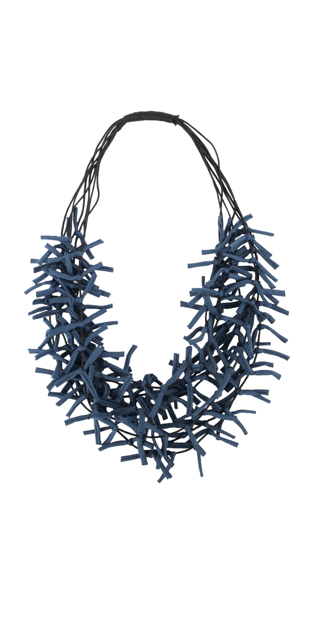 Suzie Blue Knot Multi Strand Dark Blue Jersey Necklace
