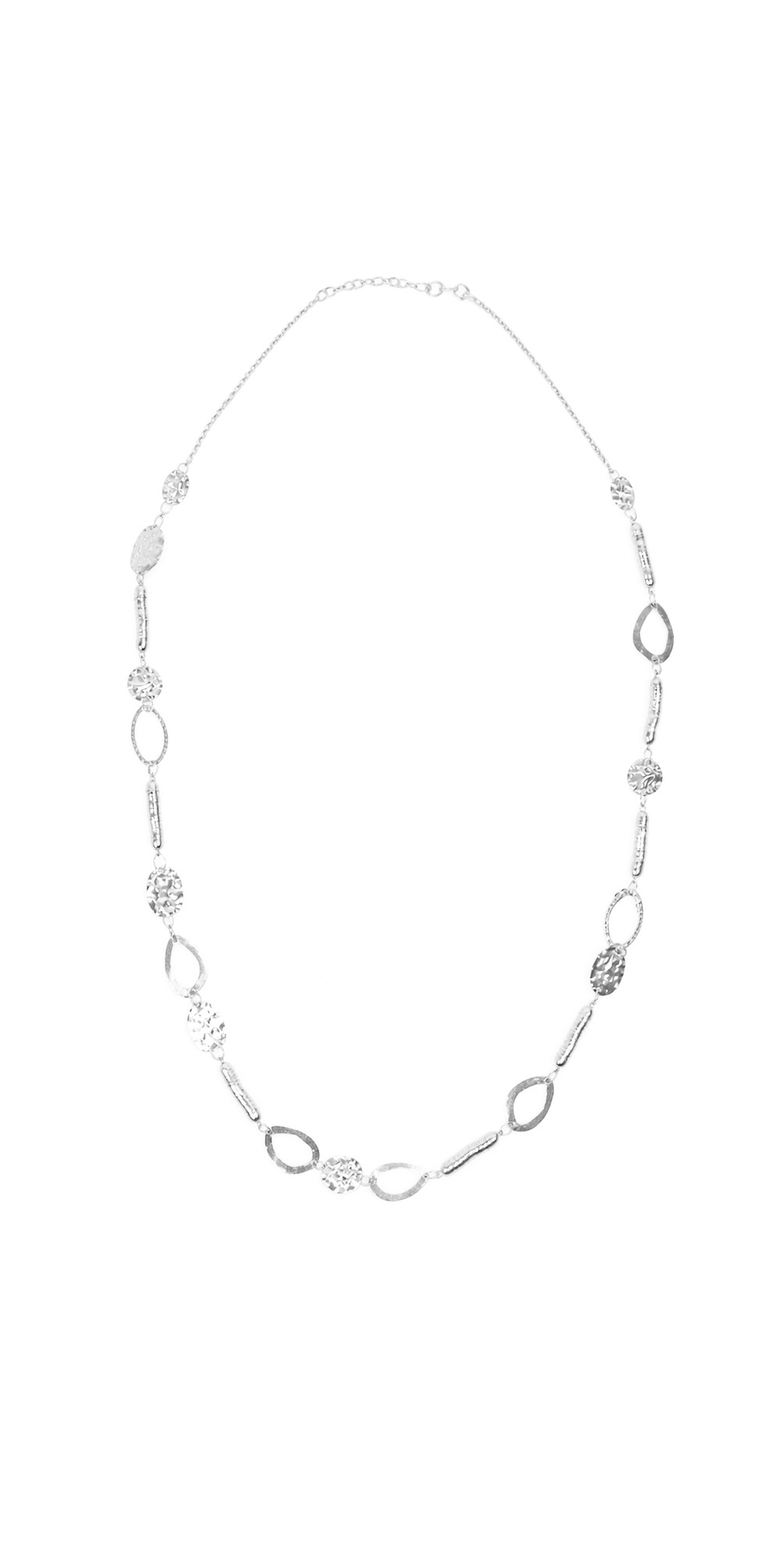 Suzie Blue Silver Long Mixed Snake & Beaten Disc Necklace