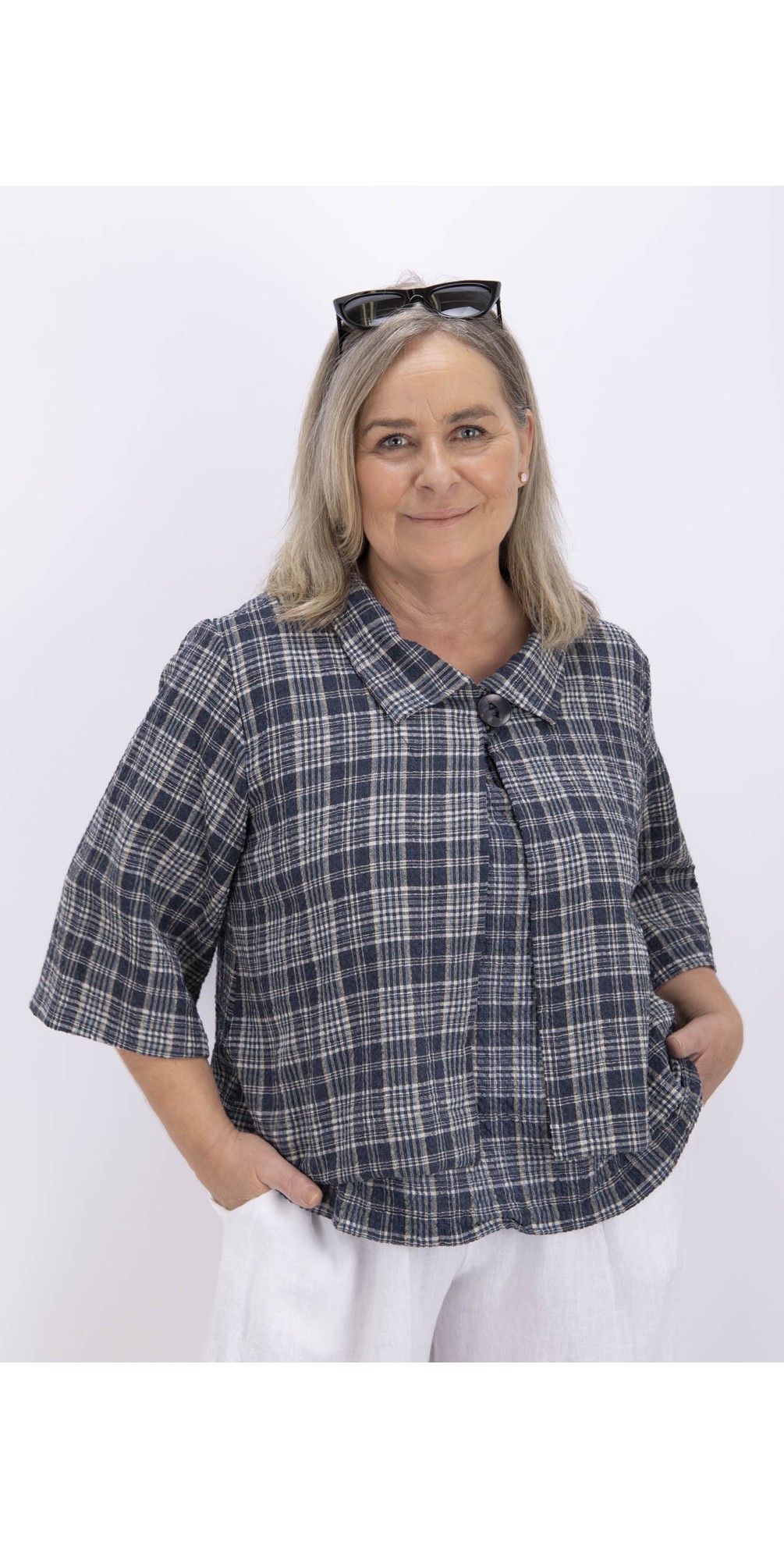 Add timeless texture to your wardrobe with the Thing Jana Linen-Blend Check Jacket — a relaxed yet refined layer designed for effortless styling. Crafted from a breathable linen-blend fabric with a classic check pattern, this jacket features a comfortable, slightly relaxed silhouette that drapes beautifully over tops and dresses. The clean open front and soft structure make it perfect for layering over everyday outfits or elevating smarter looks. Pair it with tailored trousers or denim for casual elegance with a contemporary edge.