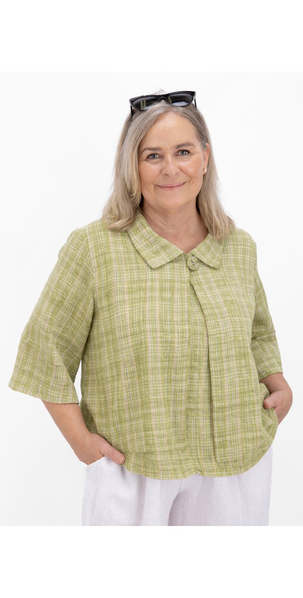 Add timeless texture to your wardrobe with the Thing Jana Linen-Blend Check Jacket — a relaxed yet refined layer designed for effortless styling. Crafted from a breathable linen-blend fabric with a classic check pattern, this jacket features a comfortable, slightly relaxed silhouette that drapes beautifully over tops and dresses. The clean open front and soft structure make it perfect for layering over everyday outfits or elevating smarter looks. Pair it with tailored trousers or denim for casual elegance with a contemporary edge.