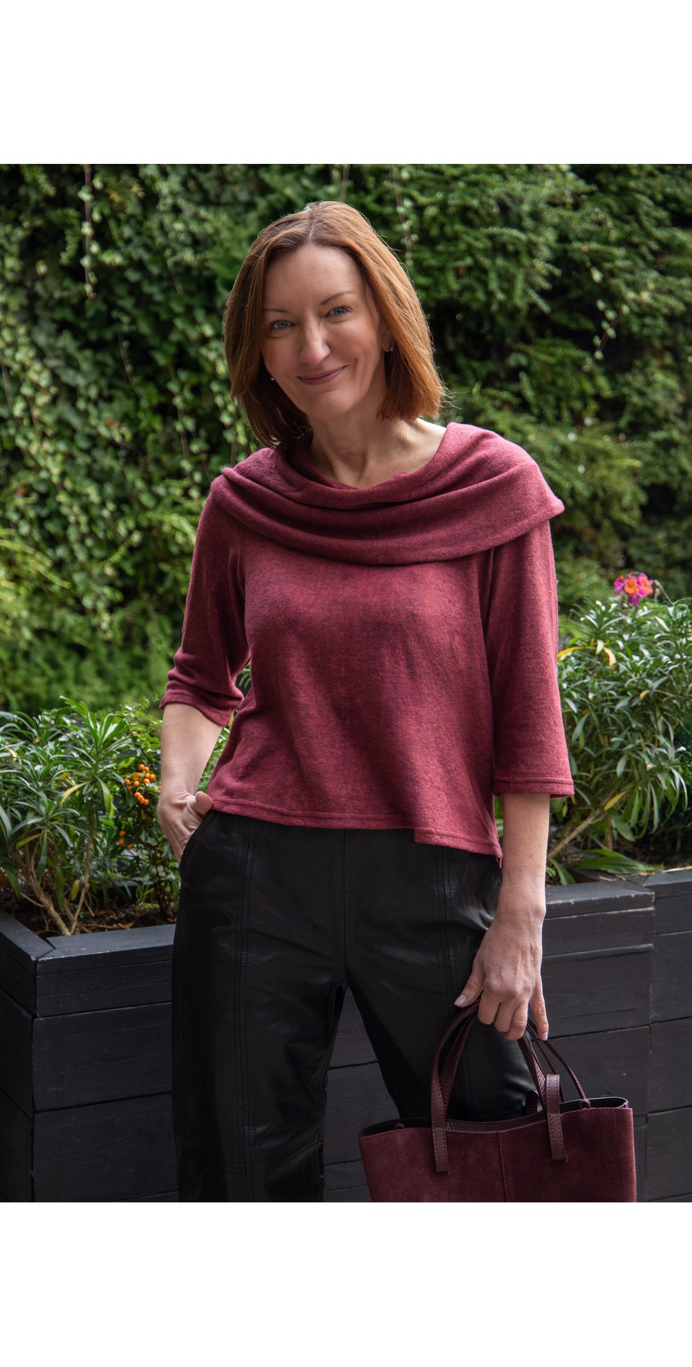 Thing Yana Wine Cowl Neck Soft Knit Boxy Top