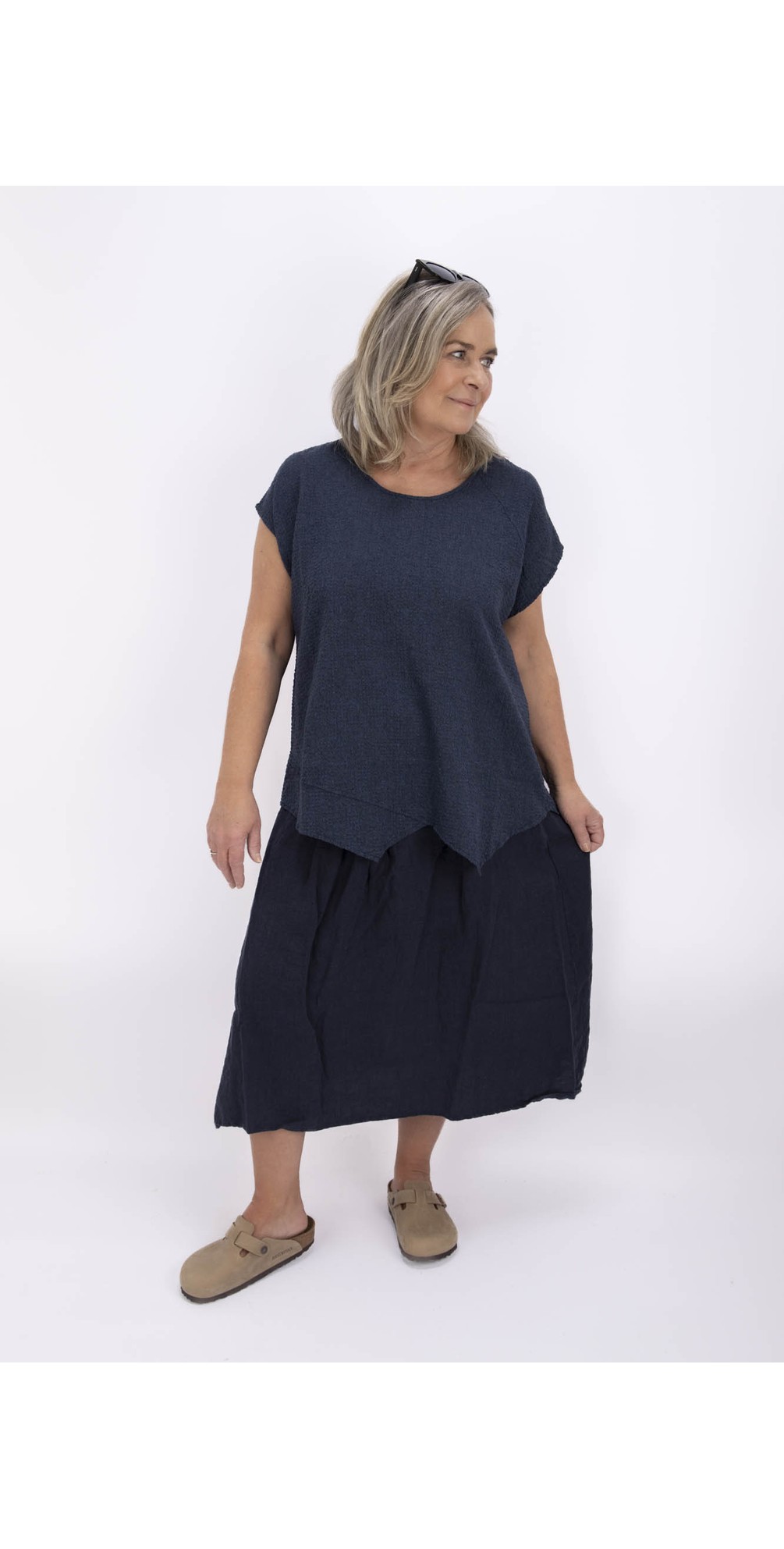 The Thing Yelena Linen Blend Seersucker Asymetric Top is a stylish Asymetric design that will effortlessly mix and match in your wardrobe. With short cap sleeves and textured fabric design that is made up of a linen blend, it is a great top to wear as you head into Summer. Pair with matching linen trousers and combine with check print accessories for an easy to wear look.