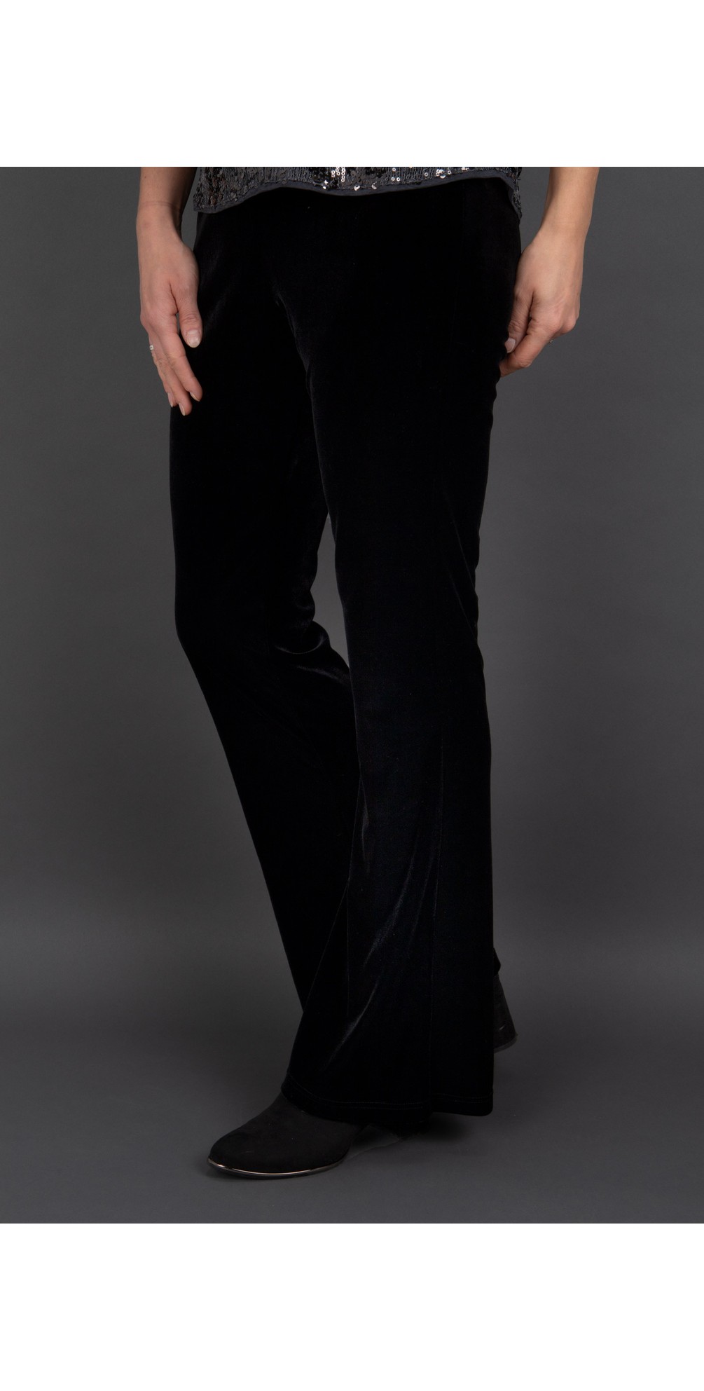 Step into party season in this classic velvet trouser. The Velvet Black Stretch Flare Trouser from Tia is a full-length flared trouser with a slim fit and flattering concealed elasticated waistband. Style with a classic blazer, a blouse or your favourite party top and heels for a timeless evening look.