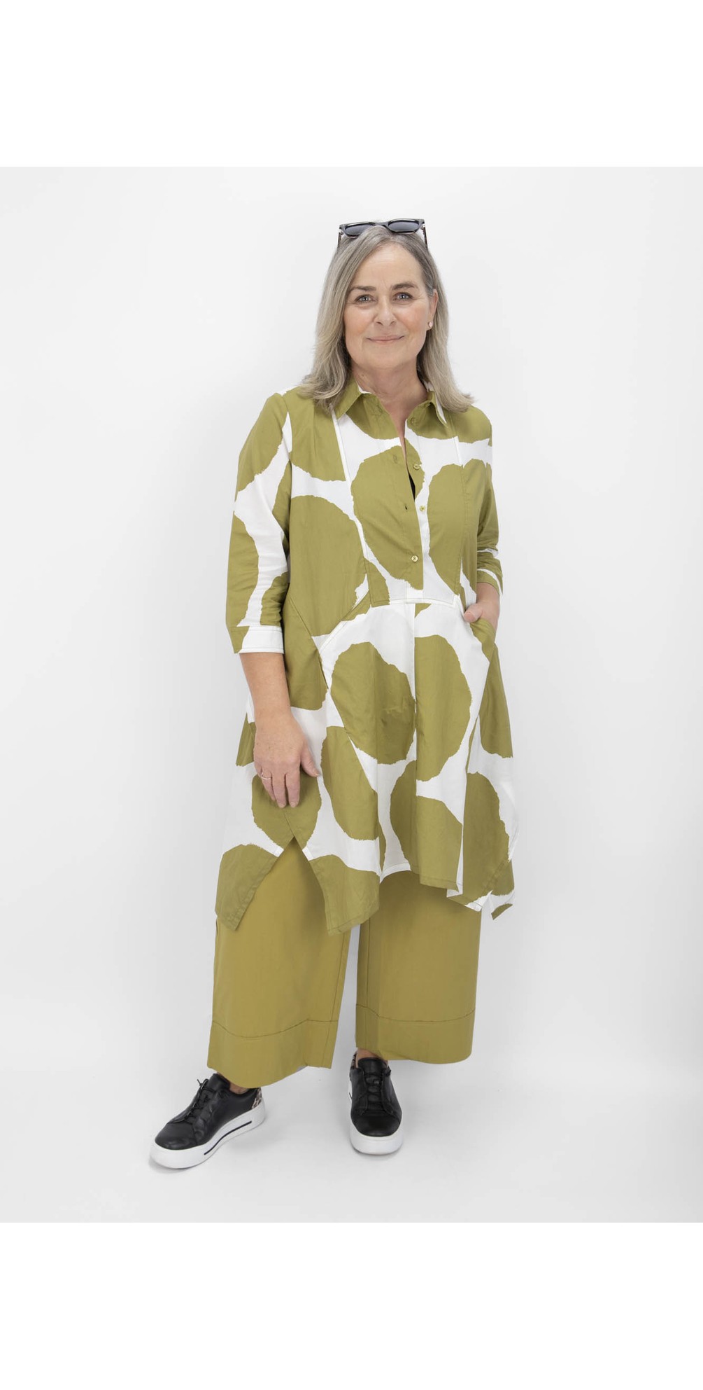 Tirelli Chartreuse And White Spot Handkerchief Hem Print Shirt