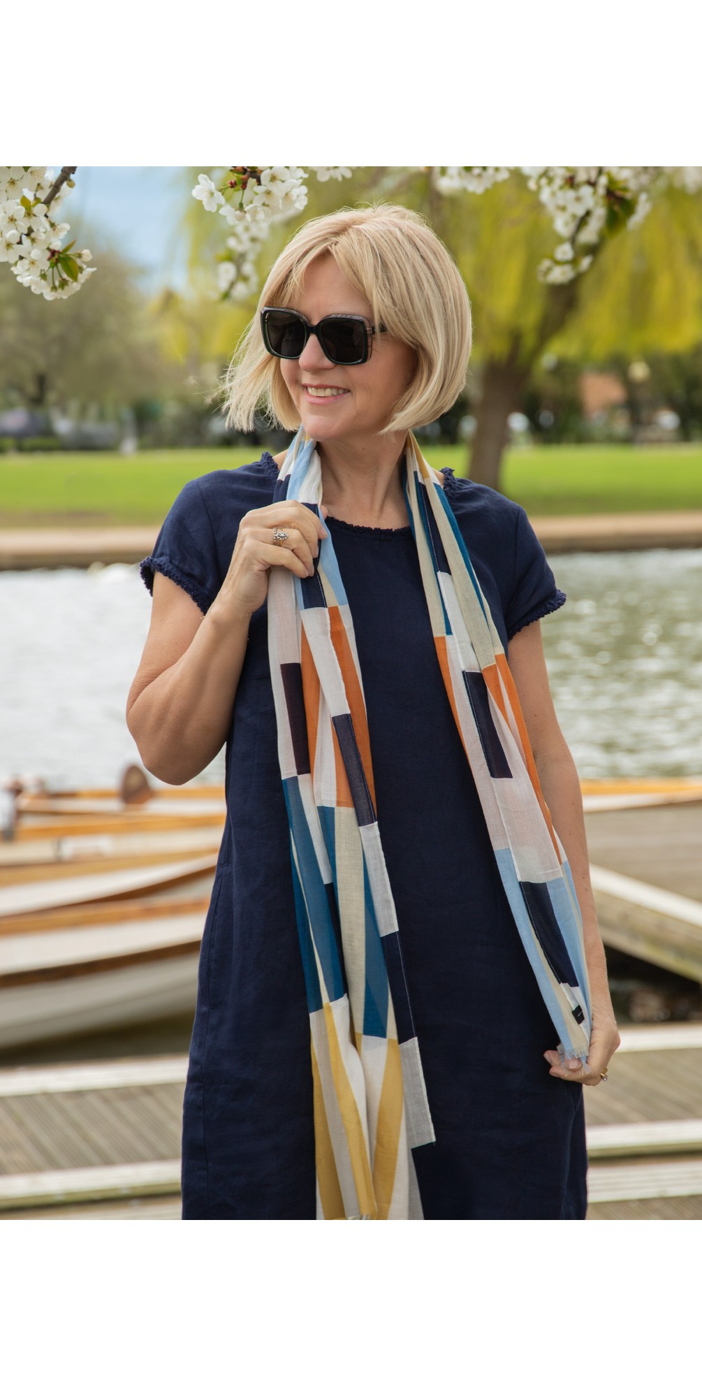 Introducing this season, the Fraas Cotton Scarf — a beautifully versatile accessory designed to add effortless polish to any outfit. Featuring a muted multicolour geometric print, delicate frayed edging and crafted from a lightweight fabric that drapes gracefully, it’s perfect for layering over jackets, knits or dresses. A timeless finishing touch to elevate your everyday style.